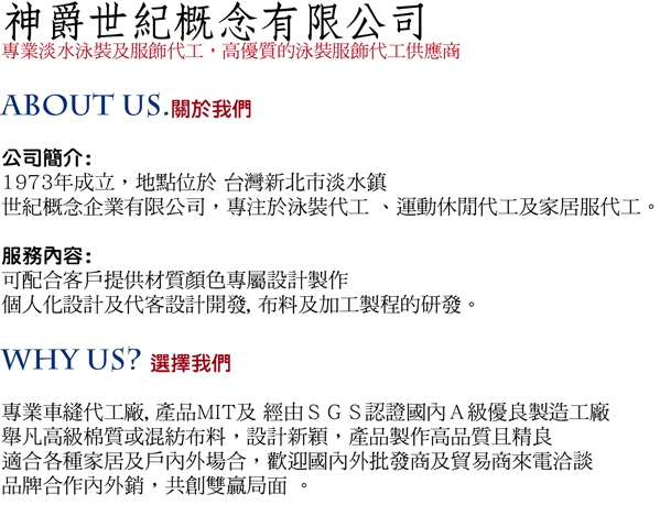 成衣代工,针车代工,成衣,泳装,泳装代工,运动机能服代工,童装代工,T恤代工,休闲机能服,儿童可爱家居服